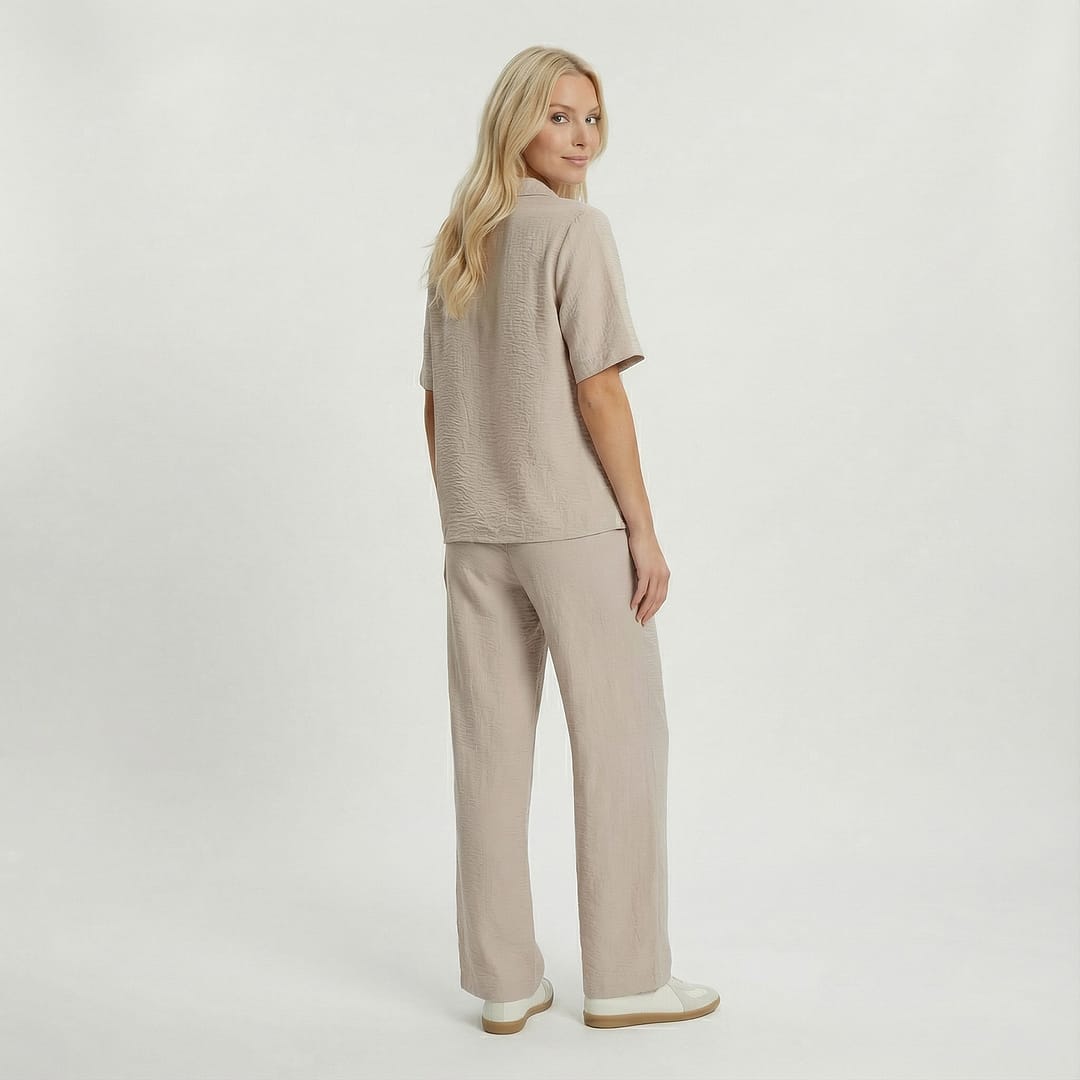 De Azura blouse is een perfecte keuze voor dames die een stijlvolle maar comfortabele top zoeken voor warme dagen. Dankzij de korte mouwen en de lichte, zachte stof voelt deze blouse heerlijk luchtig aan en blijft hij prettig zitten, ook als de temperaturen stijgen. Het ontwerp van de Azura blouse is elegant en veelzijdig, waardoor je hem eenvoudig combineert met zowel een nette pantalon als een casual jeans of rok. De subtiele details en de verzorgde afwerking geven deze blouse een moderne, vrouwelijke uitstraling zonder dat hij te druk wordt.