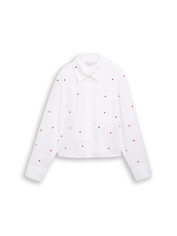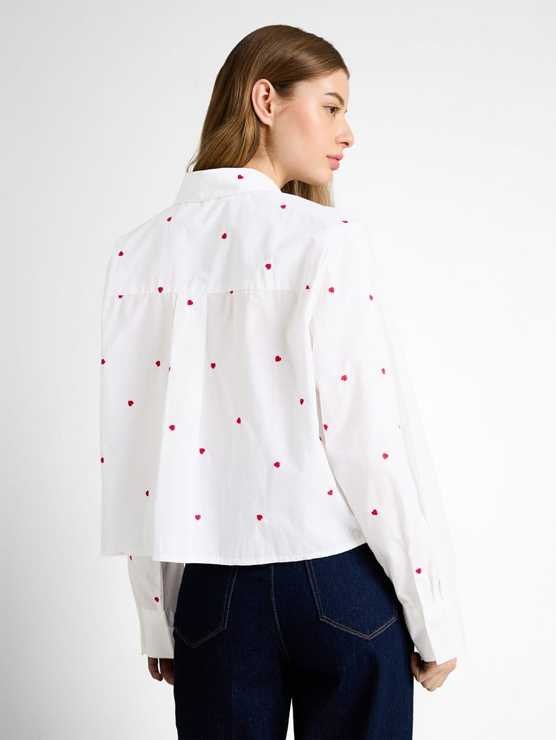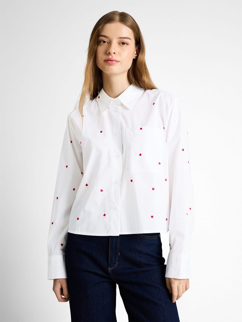 Overhemdblouse met all-over borduursels en opgestikte borstzak. Met oversneden schoudernaad voor een losse pasvorm. Gemaakt van geweven popeline katoen.