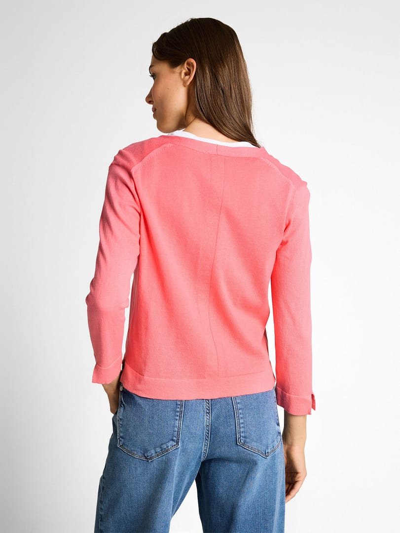Katoenen vest met V-hals, 7/8-mouwen en korte zijsplitten