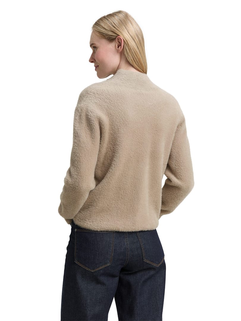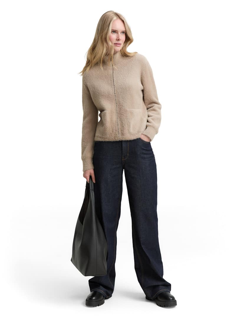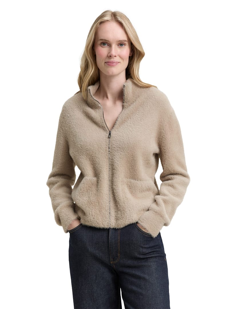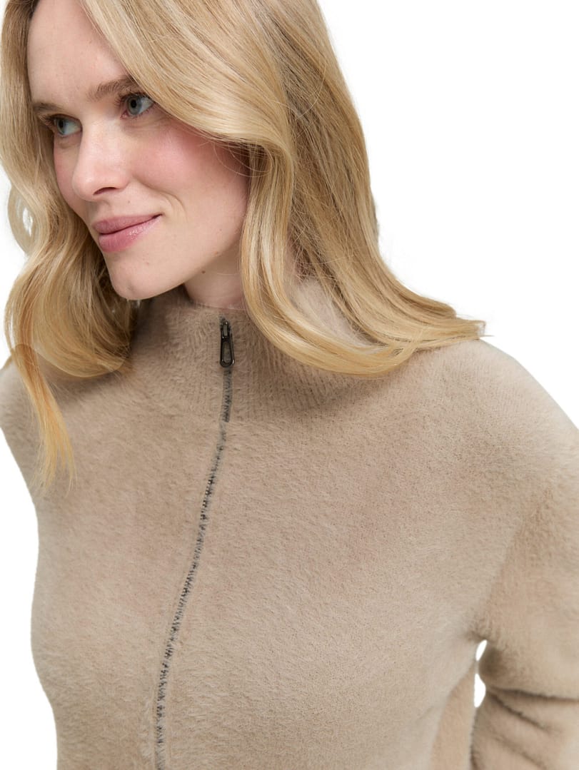 Feather yarn cardigan with zip