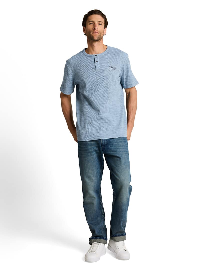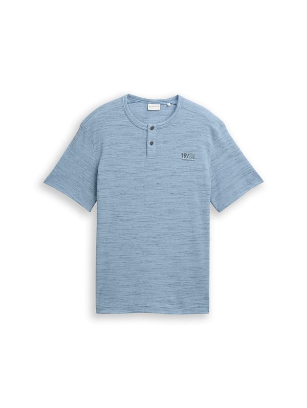 Gemêleerd Henley-T-shirt met knoopsluiting aan de kraag en logoprint op de borst. Gemaakt van een gestructureerde stof met wafeloptiek en stretch.