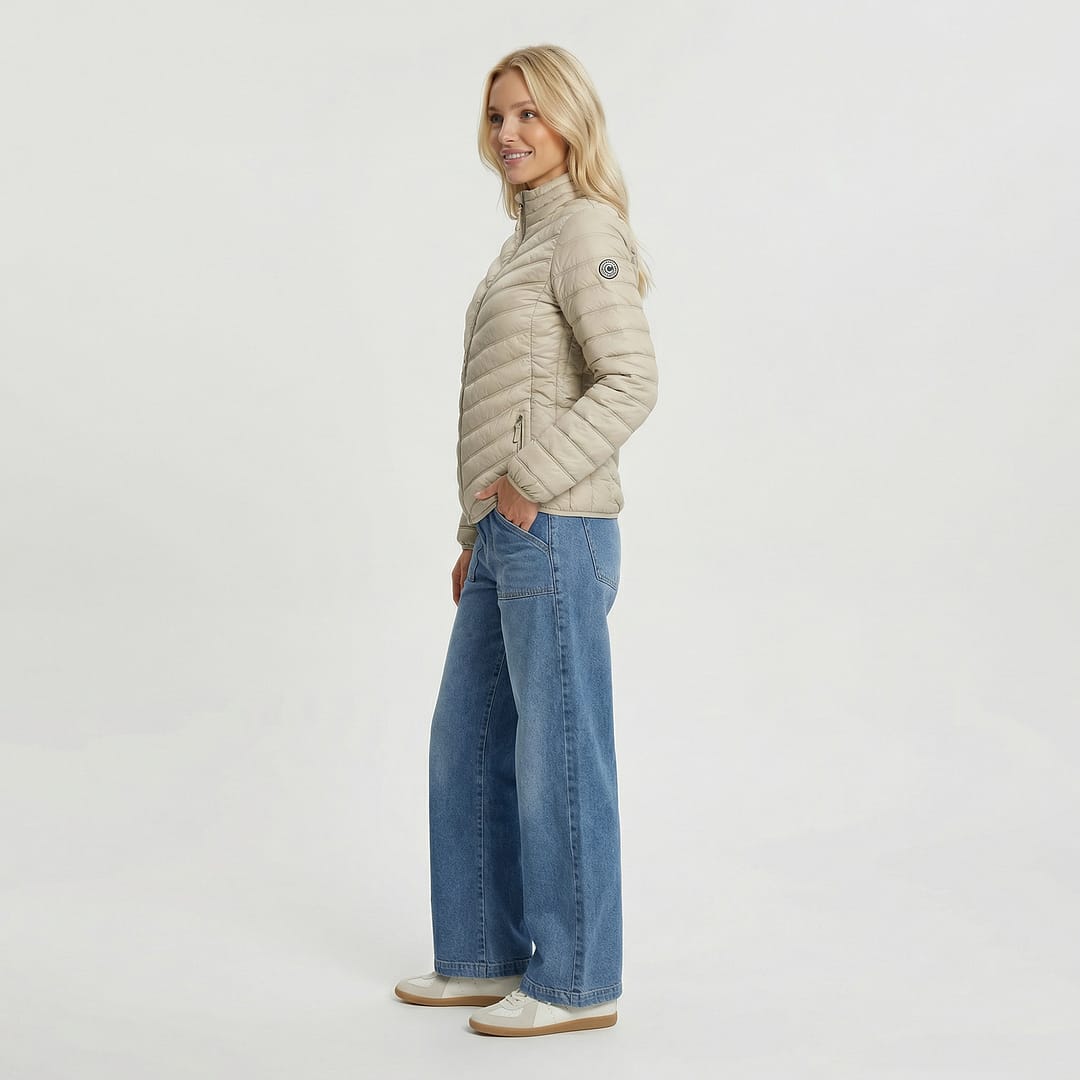 Jas Glennis is de perfecte jas voor frisse lentedagen en koele zomeravonden. De lichte en ademende afwerking maakt het een ideale keuze om moeiteloos over je outfit te dragen. Het subtiele stikpatroon geeft de jas een moderne en elegante uitstraling, perfect voor een casual of geklede look. De jas heeft handige afsluitbare zakken met ritssluiting om je essentials veilig op te bergen. Met een comfortabele en licht getailleerde pasvorm biedt Jas Glennis precies de juiste balans tussen stijl en gemak, ideaal voor de wisselende temperaturen van het lente- en zomerseizoen.