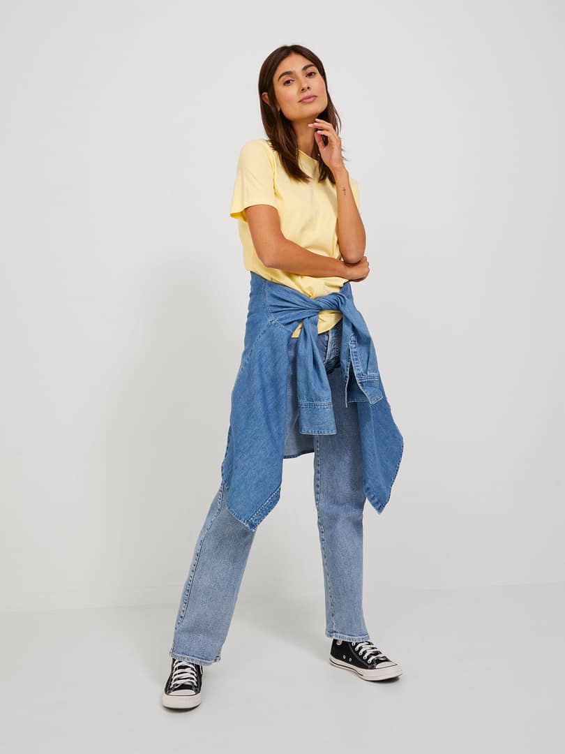 Dit basic T-shirt is een essential in je garderobe die goed past bij jeans, shorts en broeken.