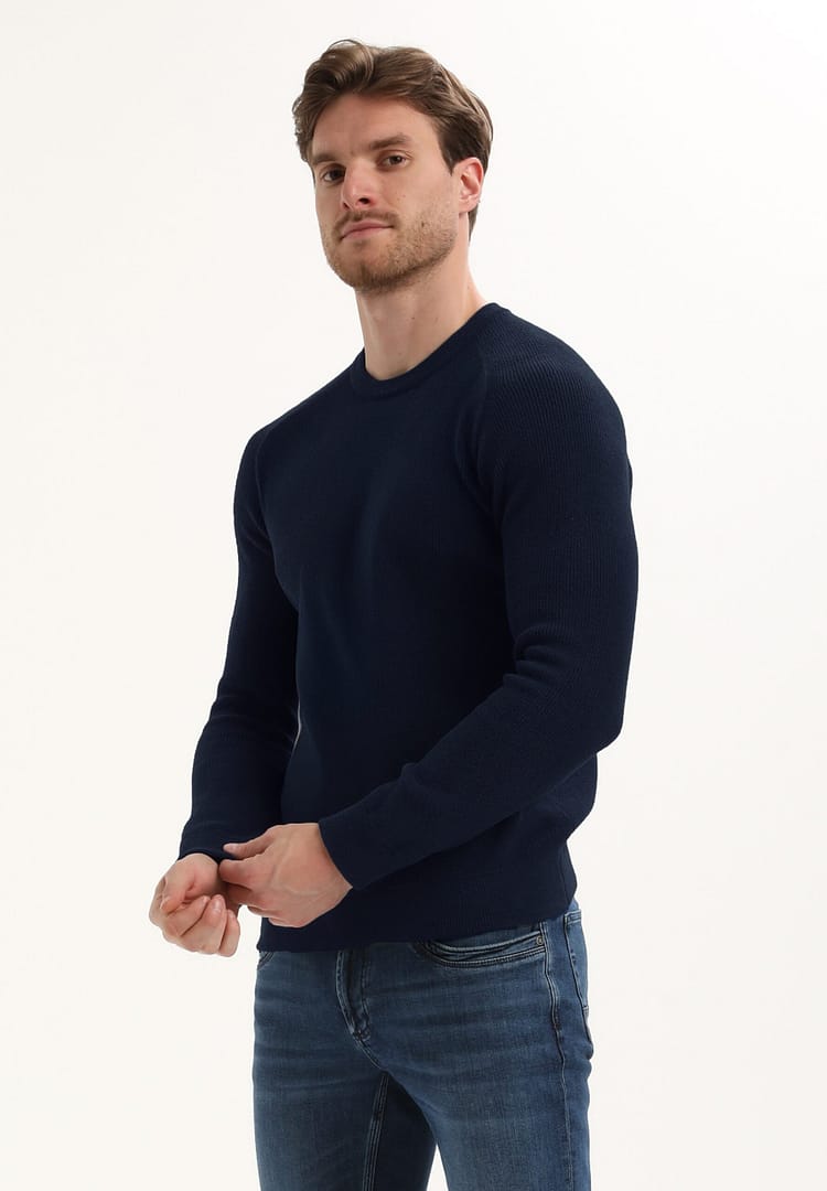 Deze stoere trui combineert een modieuze look met een relaxte pasvorm.