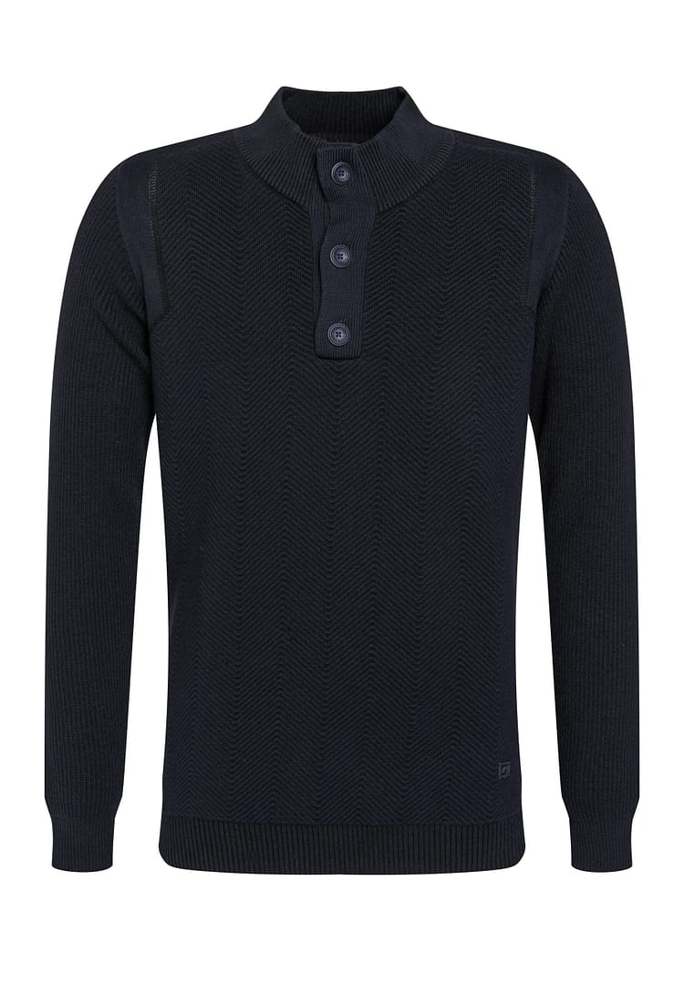 Deze gebreide trui met opstaande kraag en knoopsluiting straalt karakter uit.