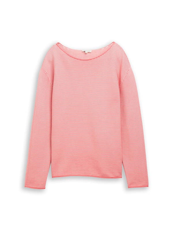 Getextureerde katoenen trui met fijn streepmotief en gerolde zoomranden