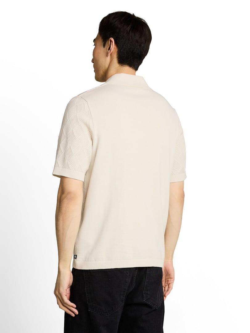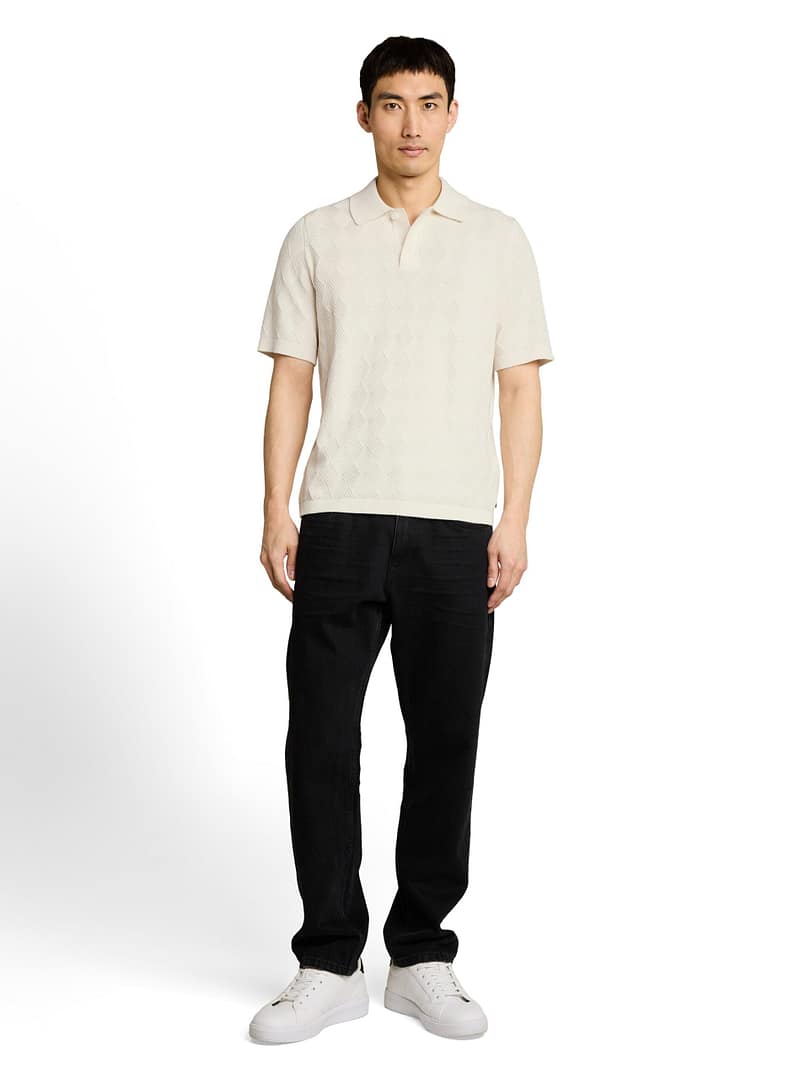 Trui met korte mouwen, polokraag en halve knoopsluiting. Gemaakt van gestructureerd katoen.