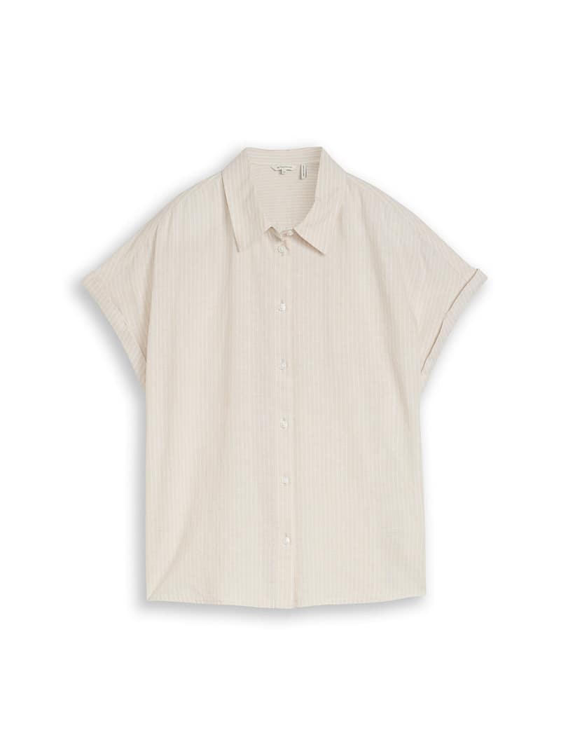 Losvallende linnen blouse met kraag en knoopsluiting. Met vaste mouwboorden en plooidetail aan de achterkant. Het linnengehalte is ideaal in de lente en zomer voor een licht en verkoelend draagcomfort.