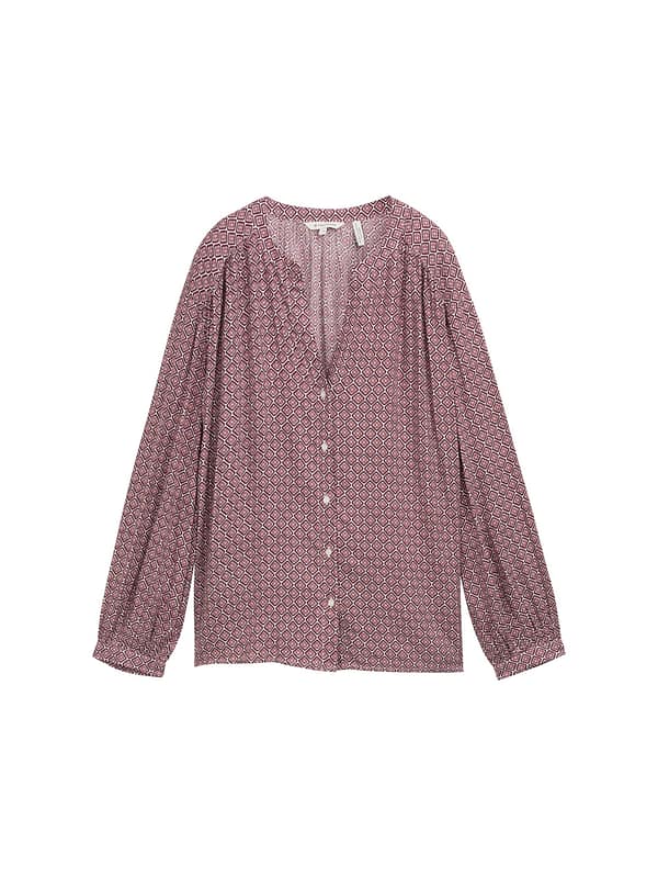 Gedessineerde loose fit blouse van viscose met lichte rimpels en V-opening bij de halslijn