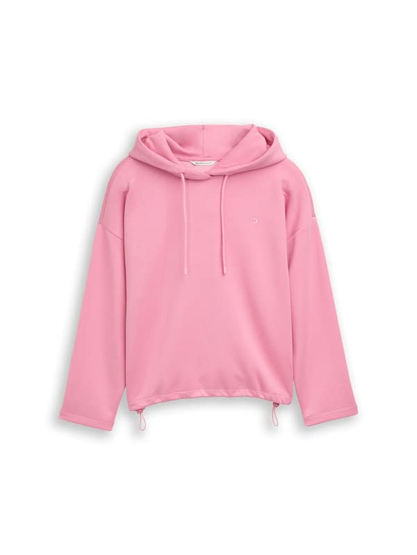Hoodie met trekkoord in de capuchon en oversneden schoudernaden voor een losse pasvorm. Met klein geborduurd logo op de borst en verstelbare elastische zoom. Gemaakt van kreukarm, elastisch en neopreenachtig scuba-materiaal.