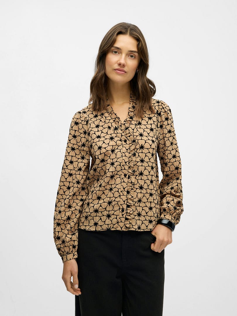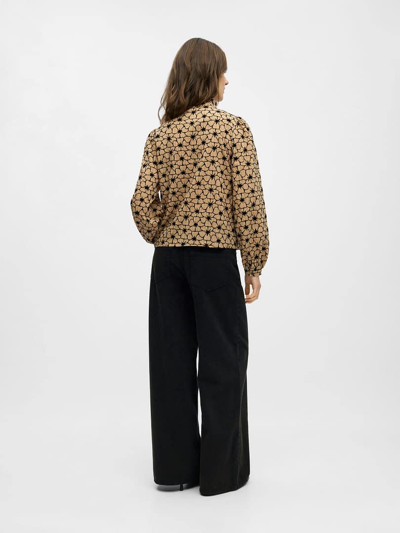 De blouse heeft eindeloze stylingmogelijkheden. Draag hem open voor een ontspannen vibe of dichtgeknoopt voor een nette look.