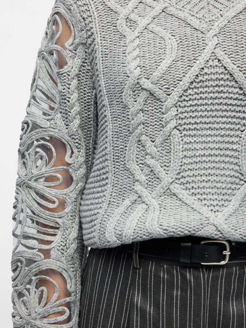 – Details : 3D borduren, Kabelgebreid detail, Geribde zoom