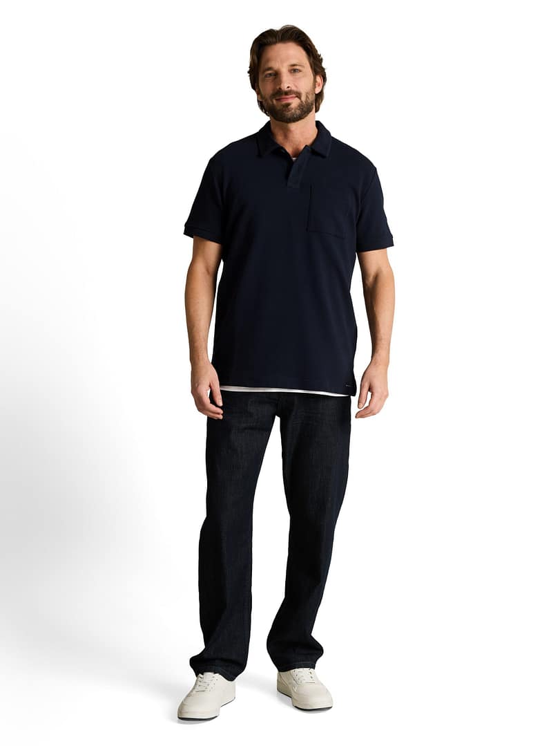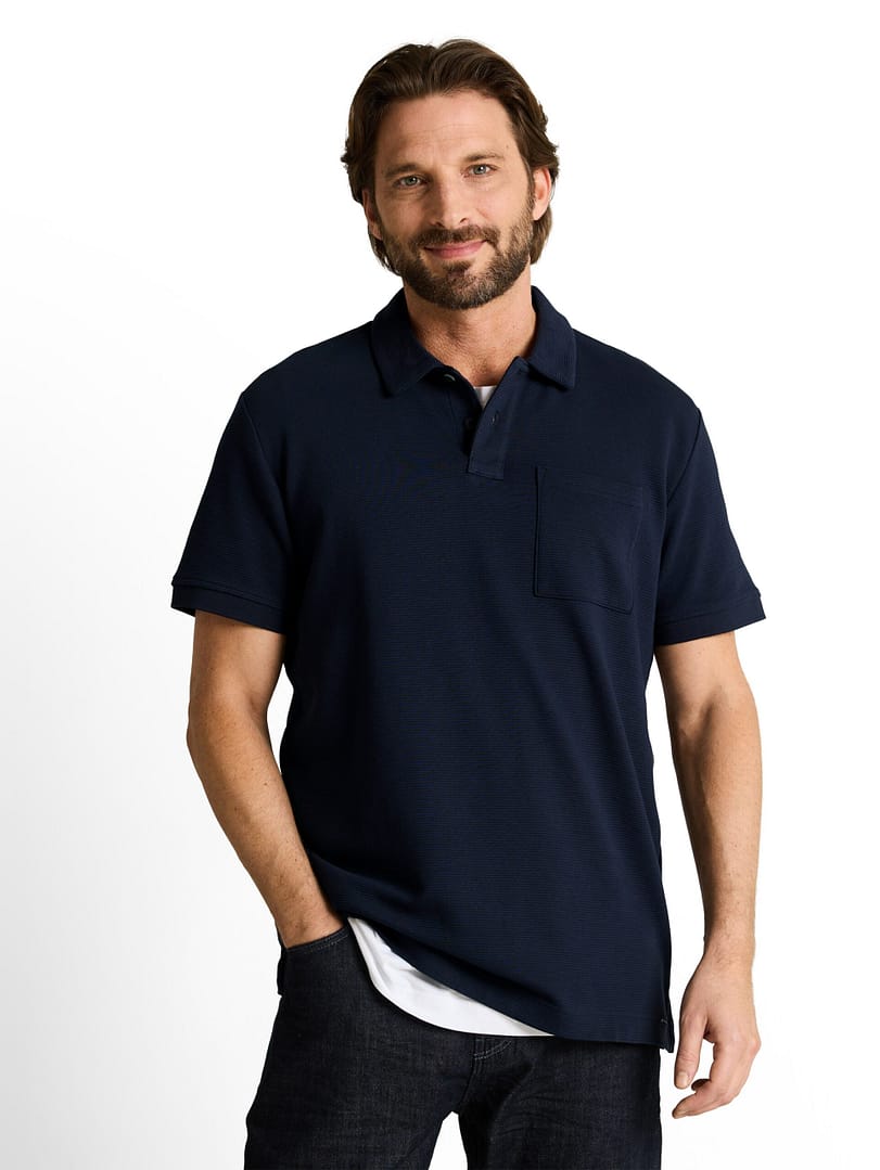 Ottoman poloshirt met korte mouwen en borstzak in effen kleuren. Gemaakt van een gestructureerde katoenen stof.