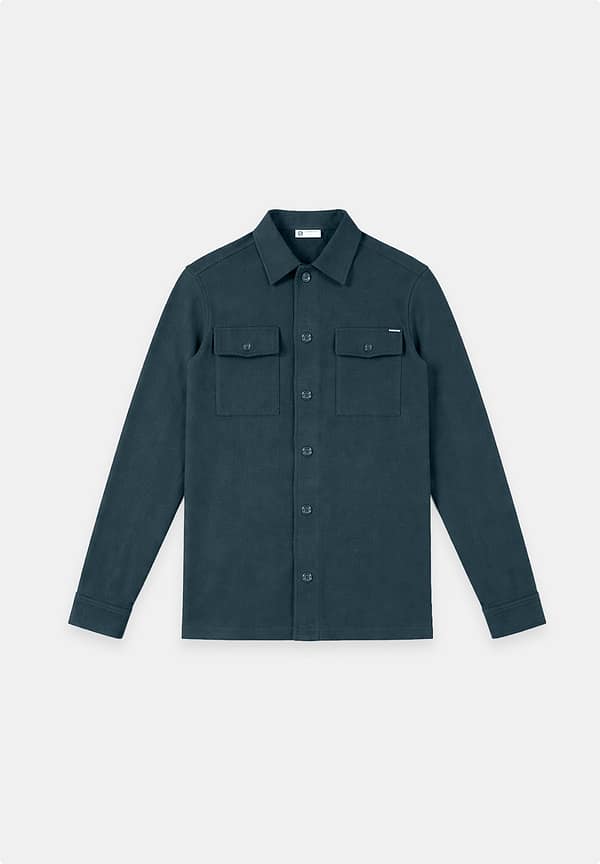 Een modern overshirt in pique interlock kwaliteit, gemaakt van een comfortabele katoenmix. Voorzien van dubbele borstzakken met subtiele branding voor een stoere, eigentijdse uitstraling. Ideaal als lichte tussenlaag of als los item op mildere dagen.