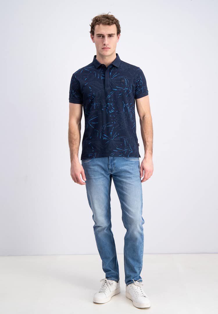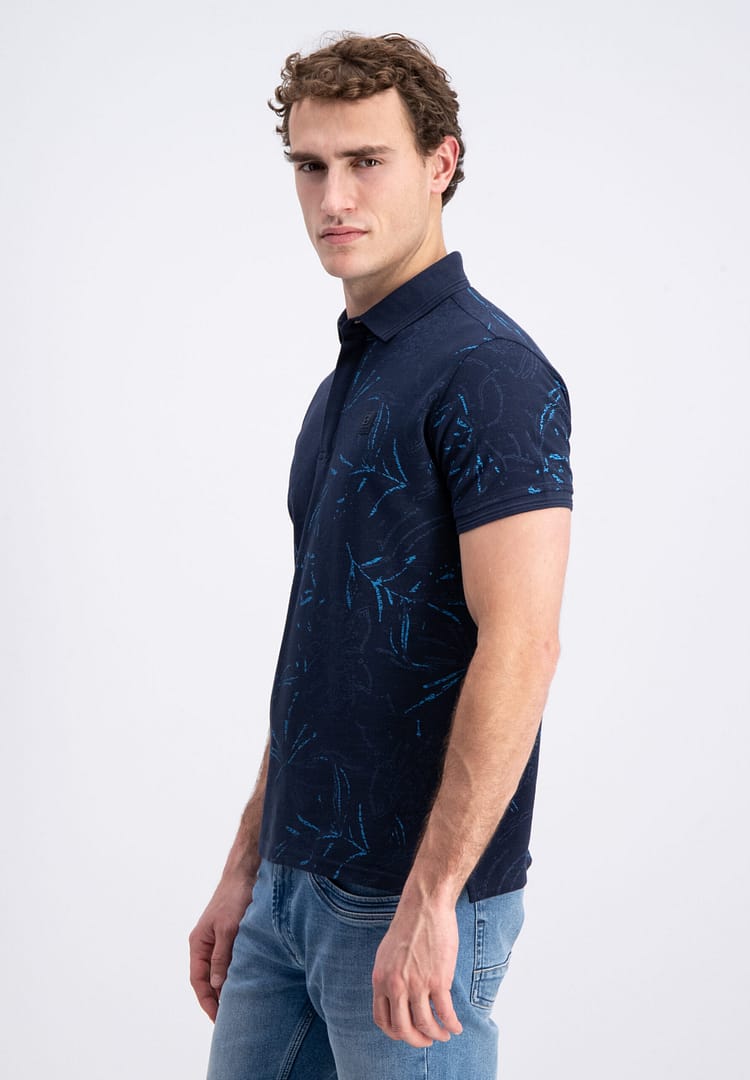 Een moderne polo met all-over geometrische print, gemaakt van ademend pique katoen. De gesloten knopenlijst geeft een cleane uitstraling, terwijl het 3D siliconen logo op de borst zorgt voor een sportieve, eigentijdse touch. De korte mouw maakt het perfect voor zomerse dagen.