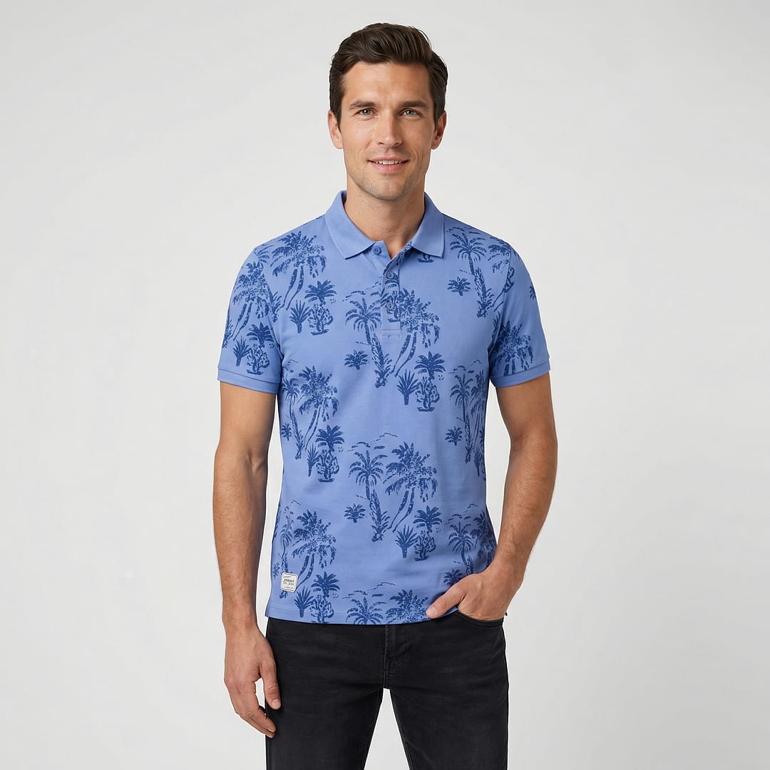 Polo Somo is een zomerse must-have voor heren die houden van een casual look met karakter. De all-over palmboomprint geeft het shirt een tropische vibe, perfect voor warme dagen. De klassieke polokraag met knoopsluiting en de korte mouwen zorgen voor een tijdloze pasvorm, terwijl de zachte katoenmix garant staat voor comfort gedurende de hele dag. Of je nu naar het strand gaat of een terras opzoekt, met deze polo geef je elke outfit moeiteloos een frisse twist.