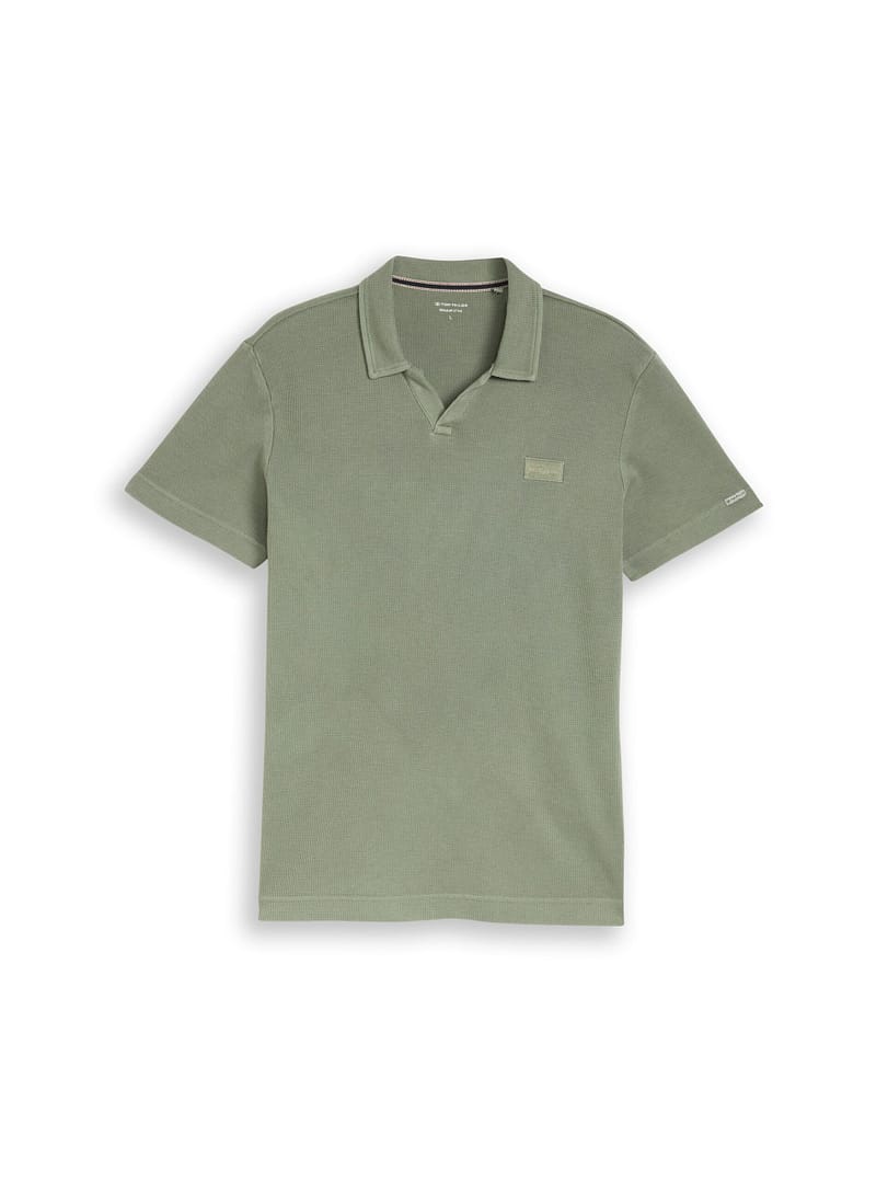 Poloshirt met logolabel op de borst en garment dye-effect in gewassen look. Gemaakt van een gestructureerde stof met wafeloptiek.