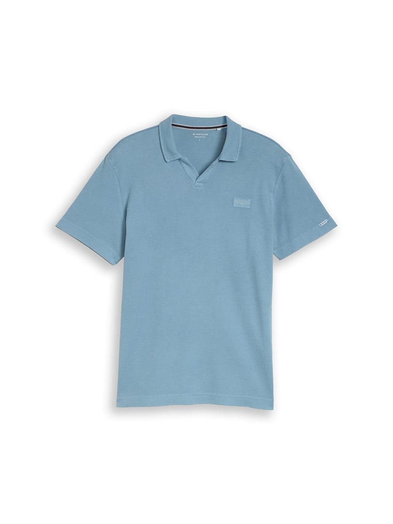Poloshirt met logolabel op de borst en garment dye-effect in gewassen look. Gemaakt van een gestructureerde stof met wafeloptiek.