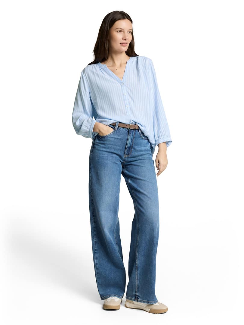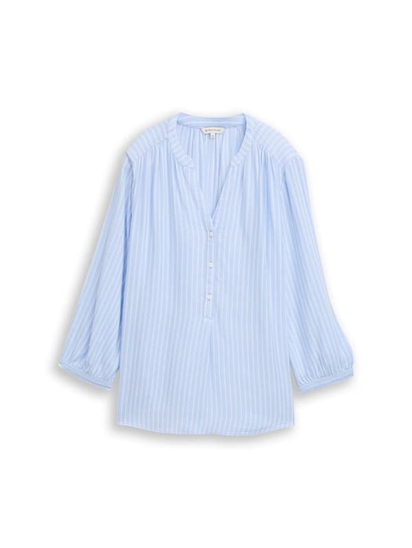 Gestreepte dobby blouse van viscose met 3/4-mouwen en lichte plooitjes op de schouders