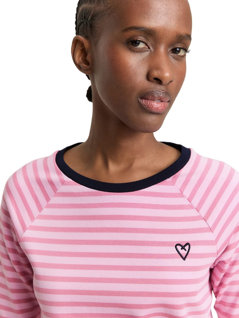 Gestreepte T-shirt met raglanmouwen en klein hartje-borduursel op de borst. Gemaakt van een ondoorzichtige interlock-jersey van katoen.