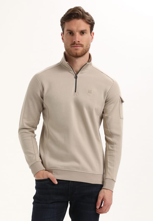 Deze comfortabele halfzip heeft een eigentijdse uitstraling dankzij de jacquardstructuur. De logo patch op de borst en het functionele mouwzakje maken het item compleet. Combineer met een jeans voor een sportieve, moderne look.