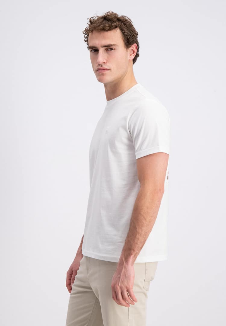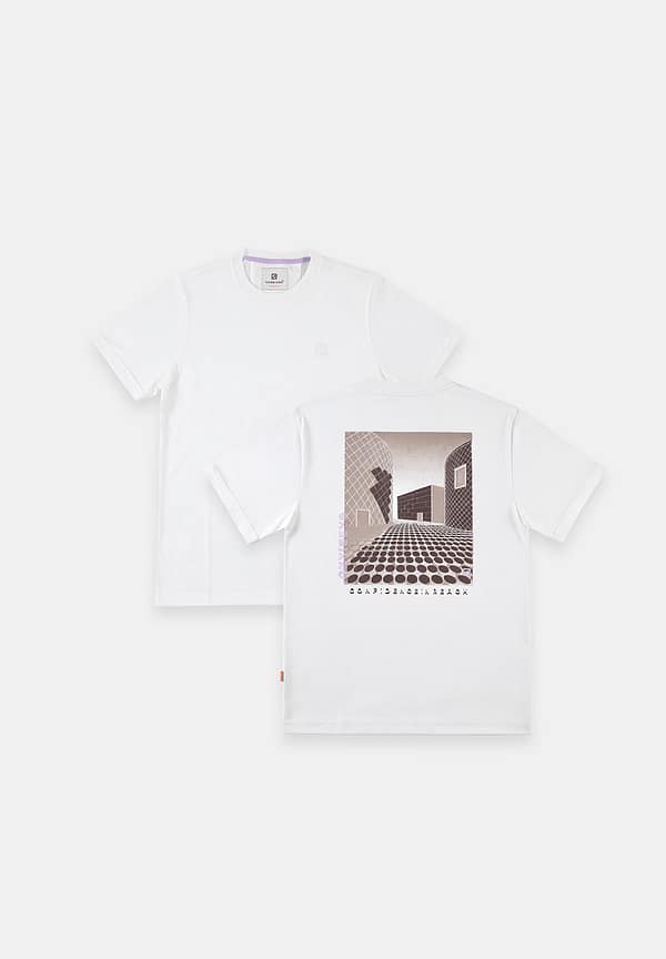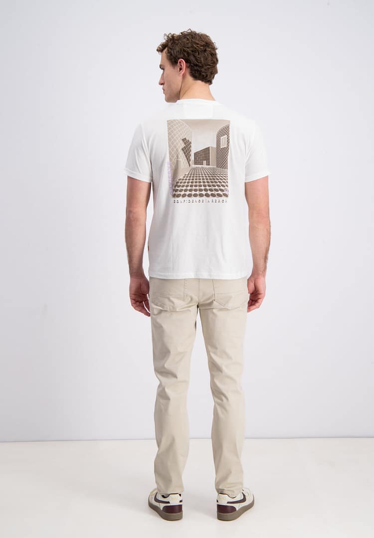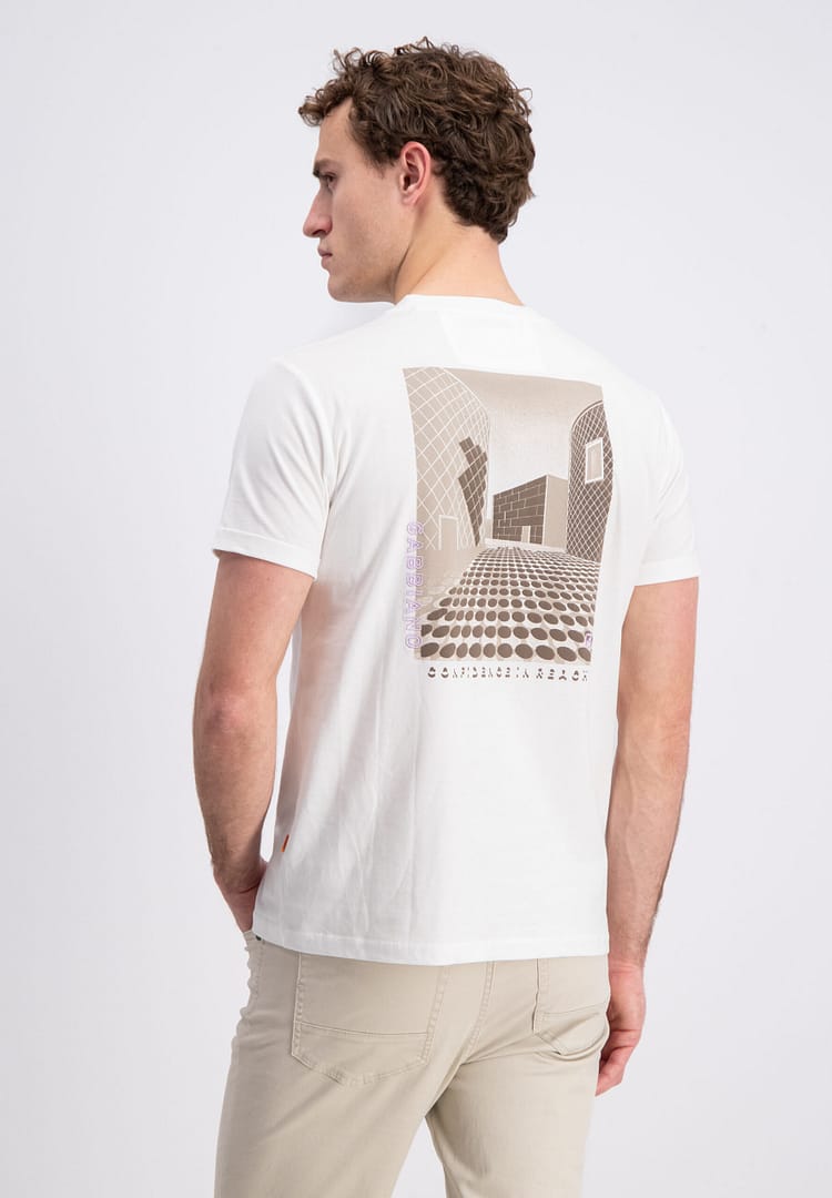 Een stijlvol T-shirt met artistieke flair, gemaakt van 100% katoen en voorzien van een abstracte architectuurprint op de rug. De ronde kraag en korte mouw zorgen voor comfort en een tijdloze pasvorm. Het ontwerp combineert strak en creatief voor een moderne uitstraling.