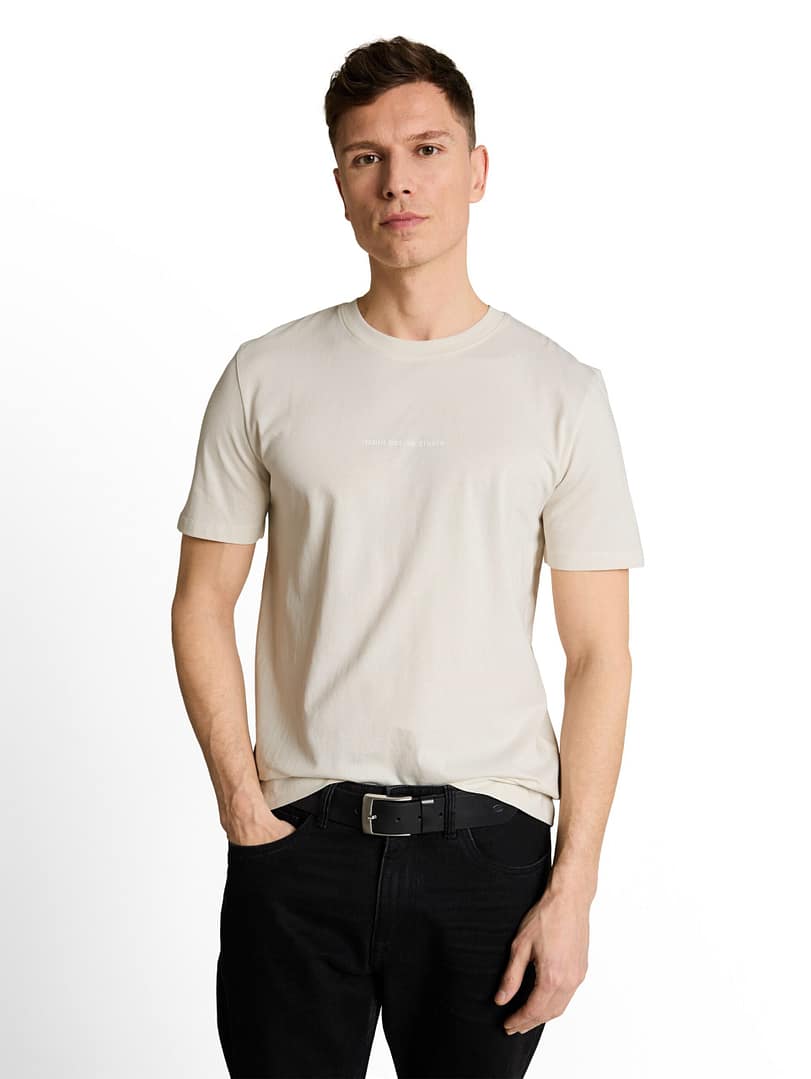 T-shirt met opschrift op de borst en palmprint op de achterkant. Gemaakt van single jersey katoen.