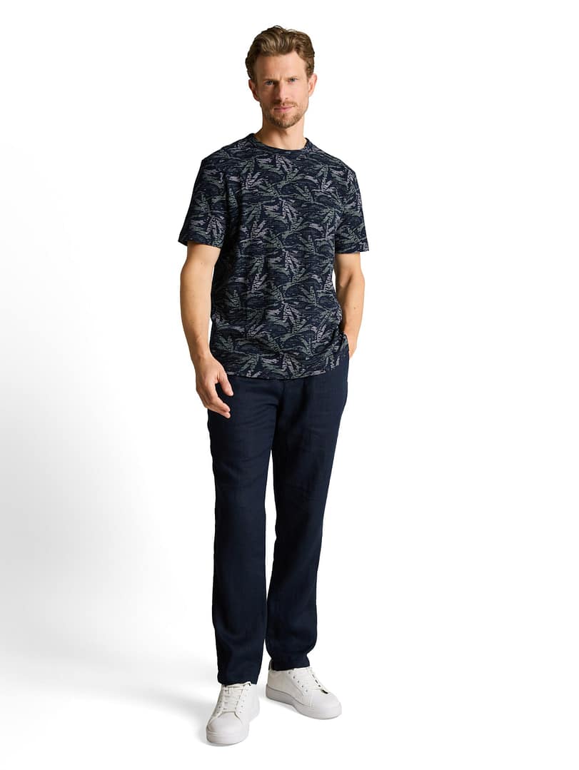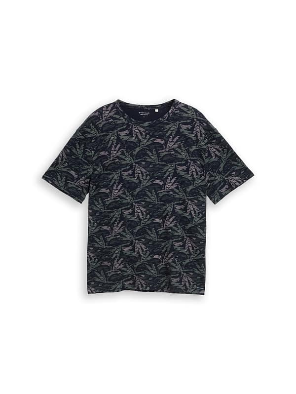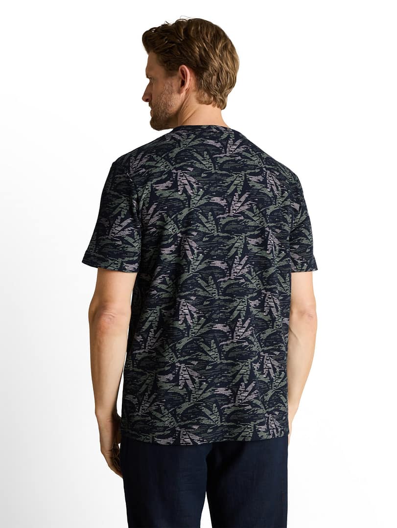 T-shirt met all-over print met palmboommotief. Gemaakt van een gestructureerd materiaal met wafeloptiek.