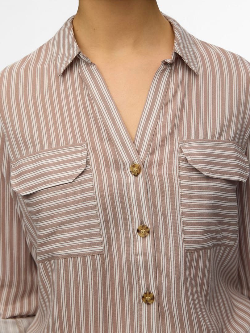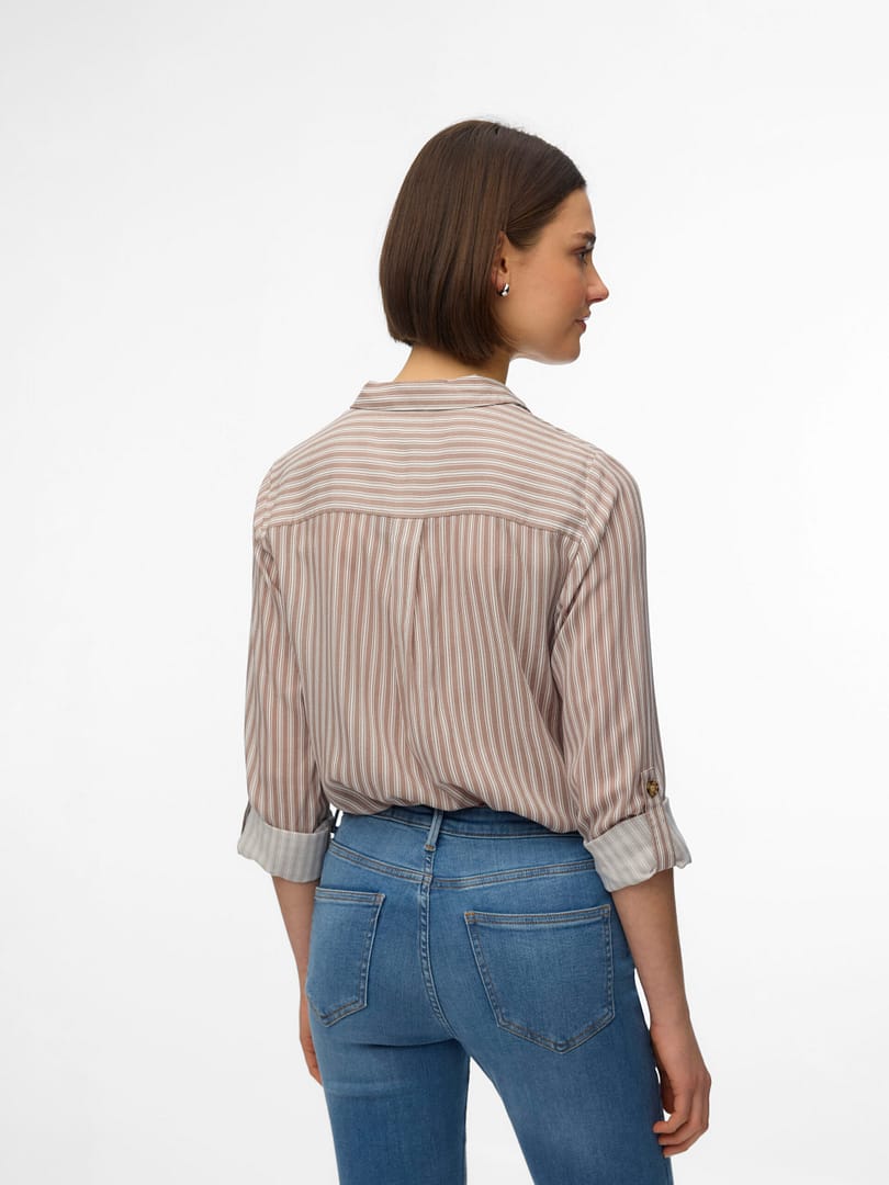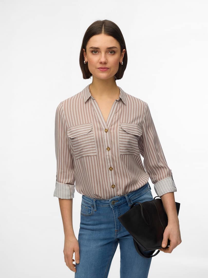 Deze blouse is een chique en veelzijdige toevoeging aan je garderobe, aangezien je hem op zichzelf of open over een simpele top kunt dragen. Combineer het met klassieke jeans en een simpel T-shirt voor een gave, alledaagse look of draag het met een broek en hoge hakken.